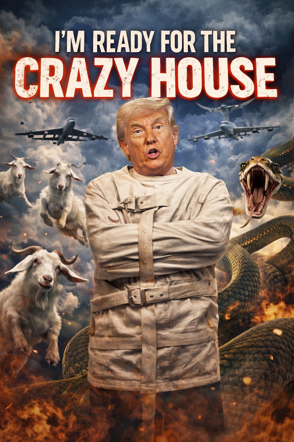 I just finished working on the text – “Remove the crazy mother F now.” Today’s White House press conference should have been a come-and-get-him white-coat convention. Trump is mad, insane. Gone, man, gone. Don’t let the man get to midday Tuesday. Seriously. Lock him in a broom closet with a bucket of ribs. Do anything to get the man out of sight and out of mind. Keep him away from the microphone and the podium. These are dangerous times, and even bucktooth Bobby Joe Peckerhead is in danger. MAGA is risking all lives in the service of this babbling freak.